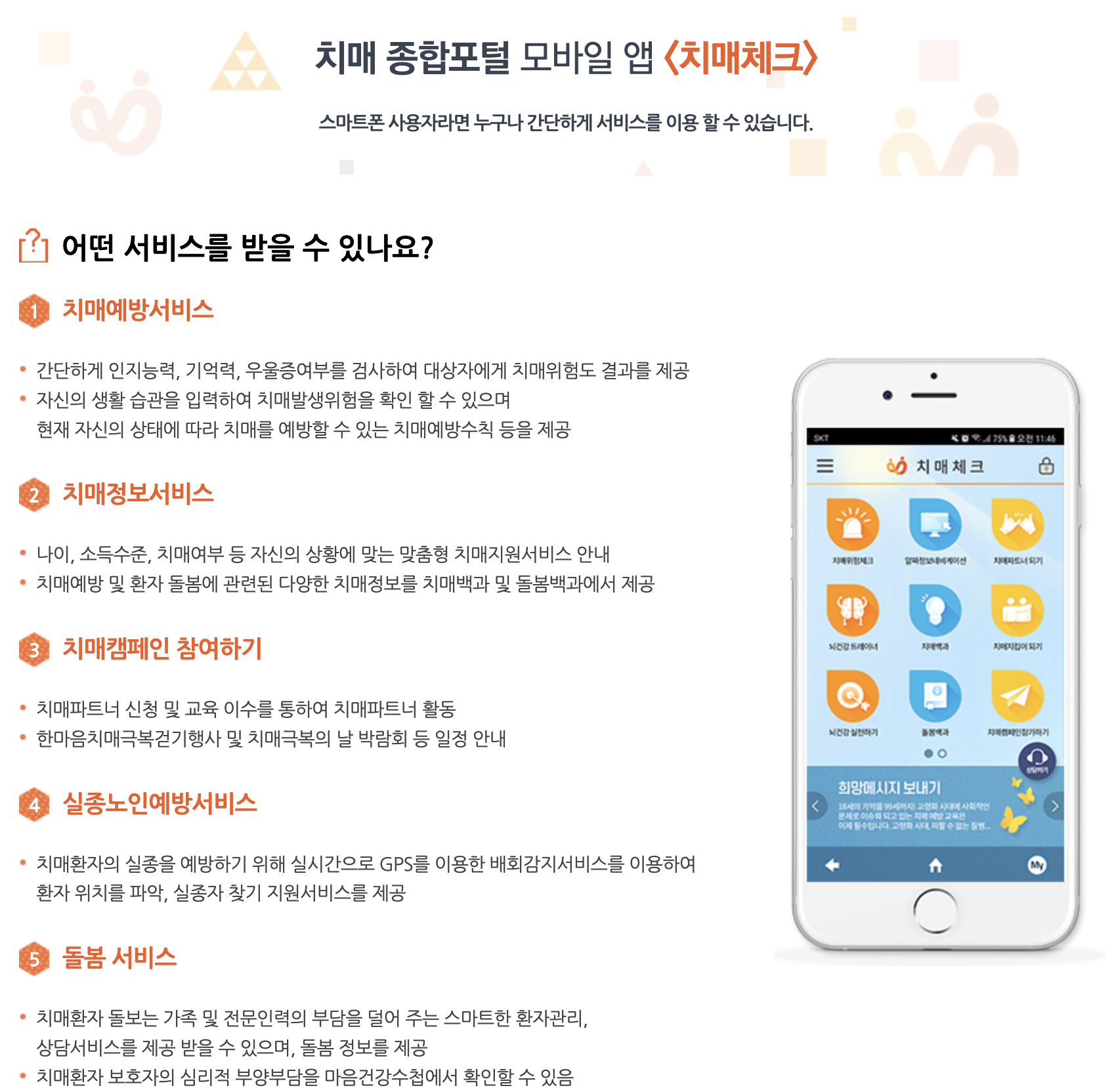 우리나라는 전세계적으로 아주 우수한 전자정부 서비스를 제공하고 있습니다. 치매와 관련해서 빠르고 정확하게 대처하기 위한 어플리케이션을 보건복지부(중앙치매센터)에서 무료로 배포하고 있으니 쉽게 이용할 수 있습니다.